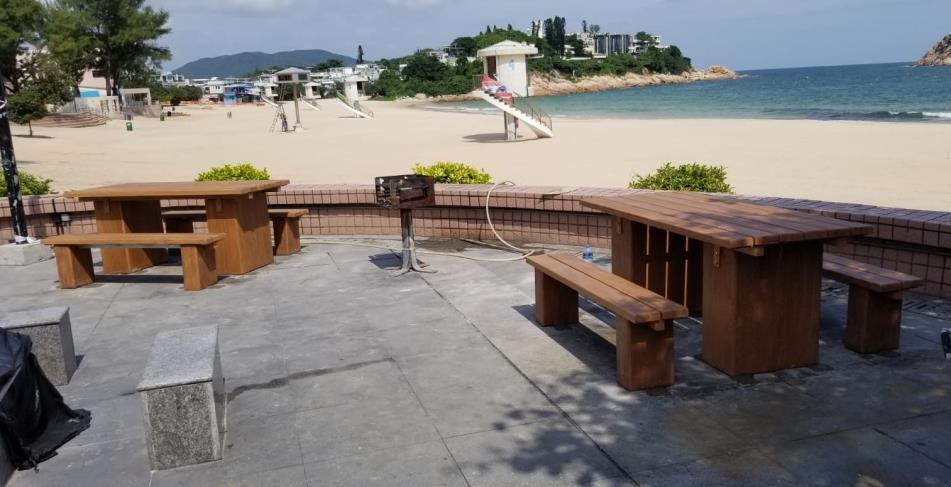 Picnic Tables with Benches at Shek O Beach Barbecue Area