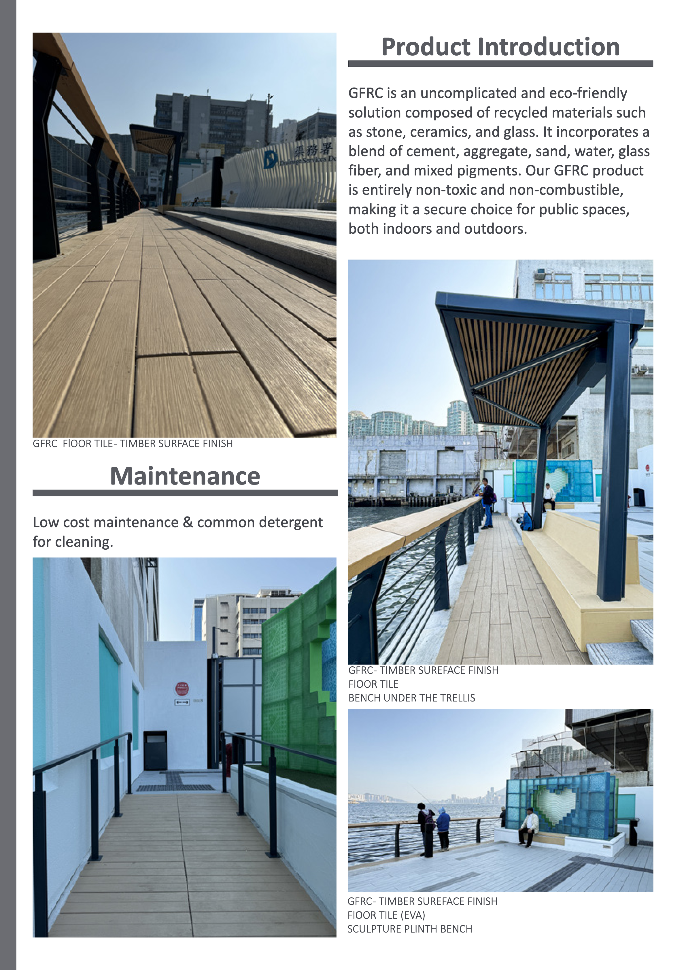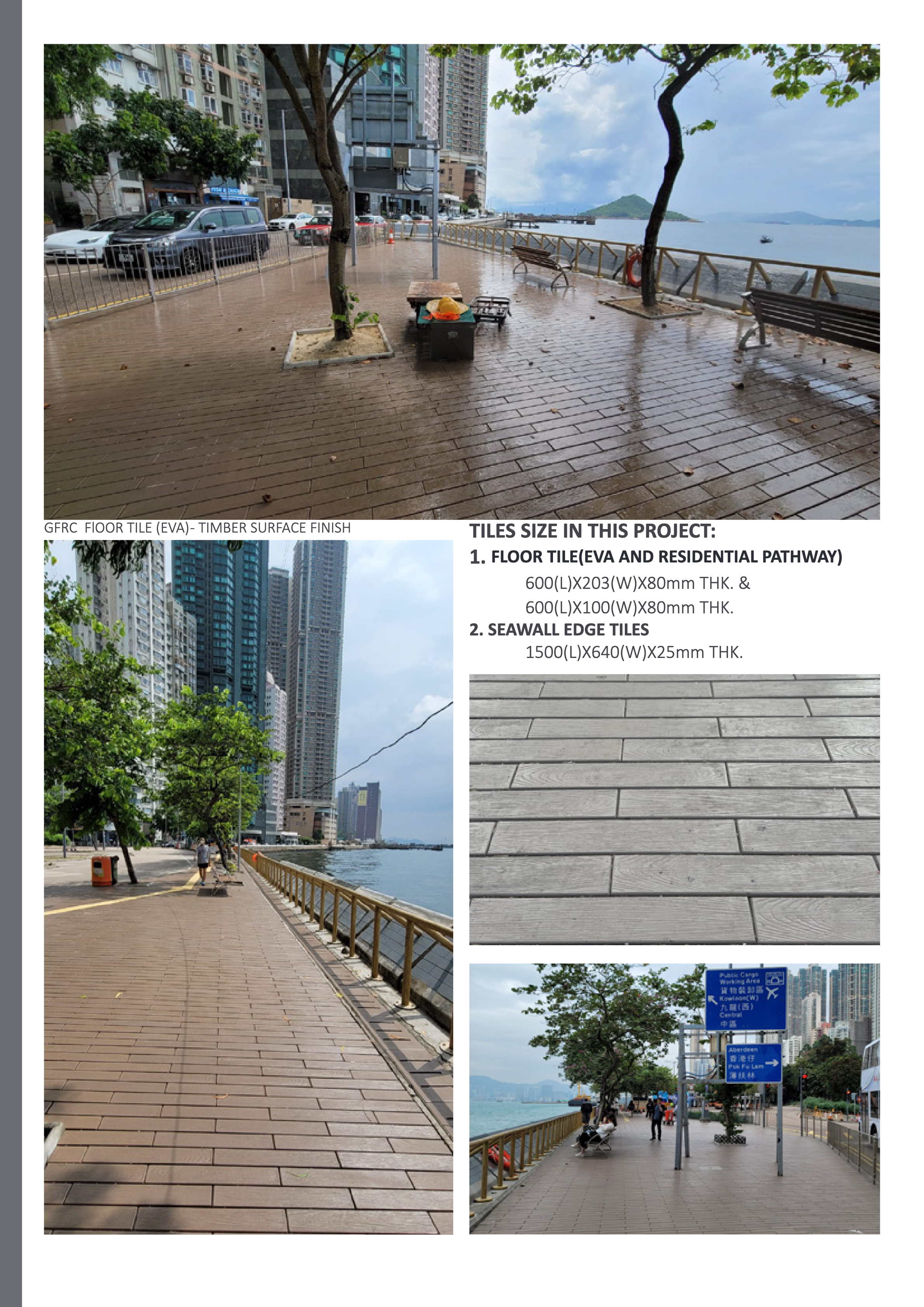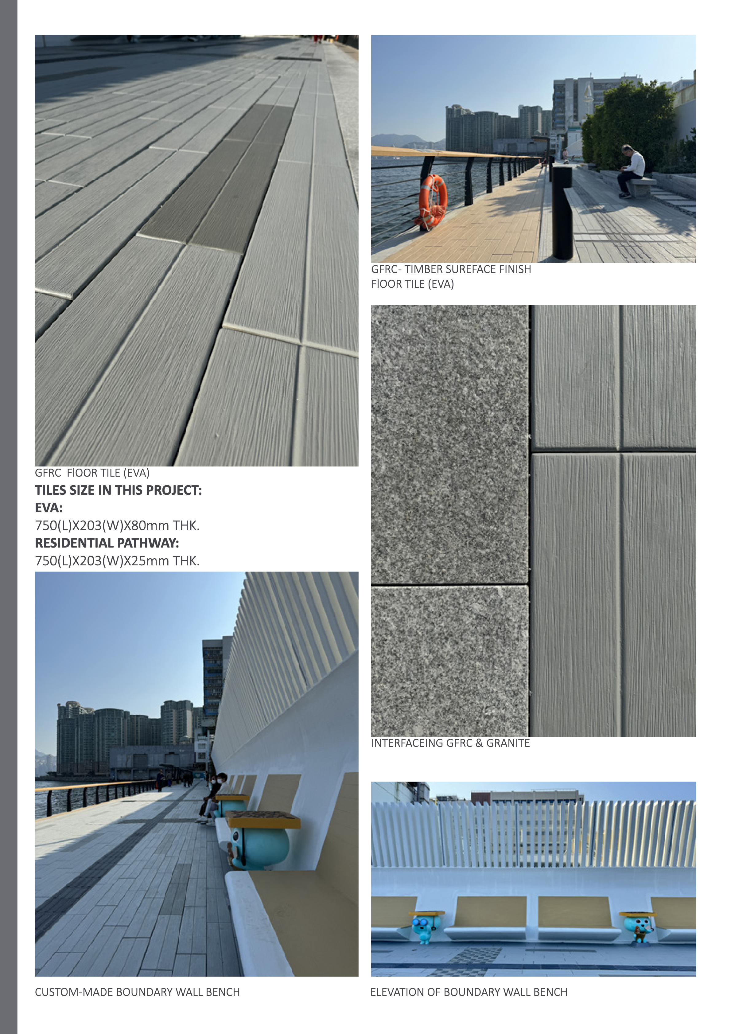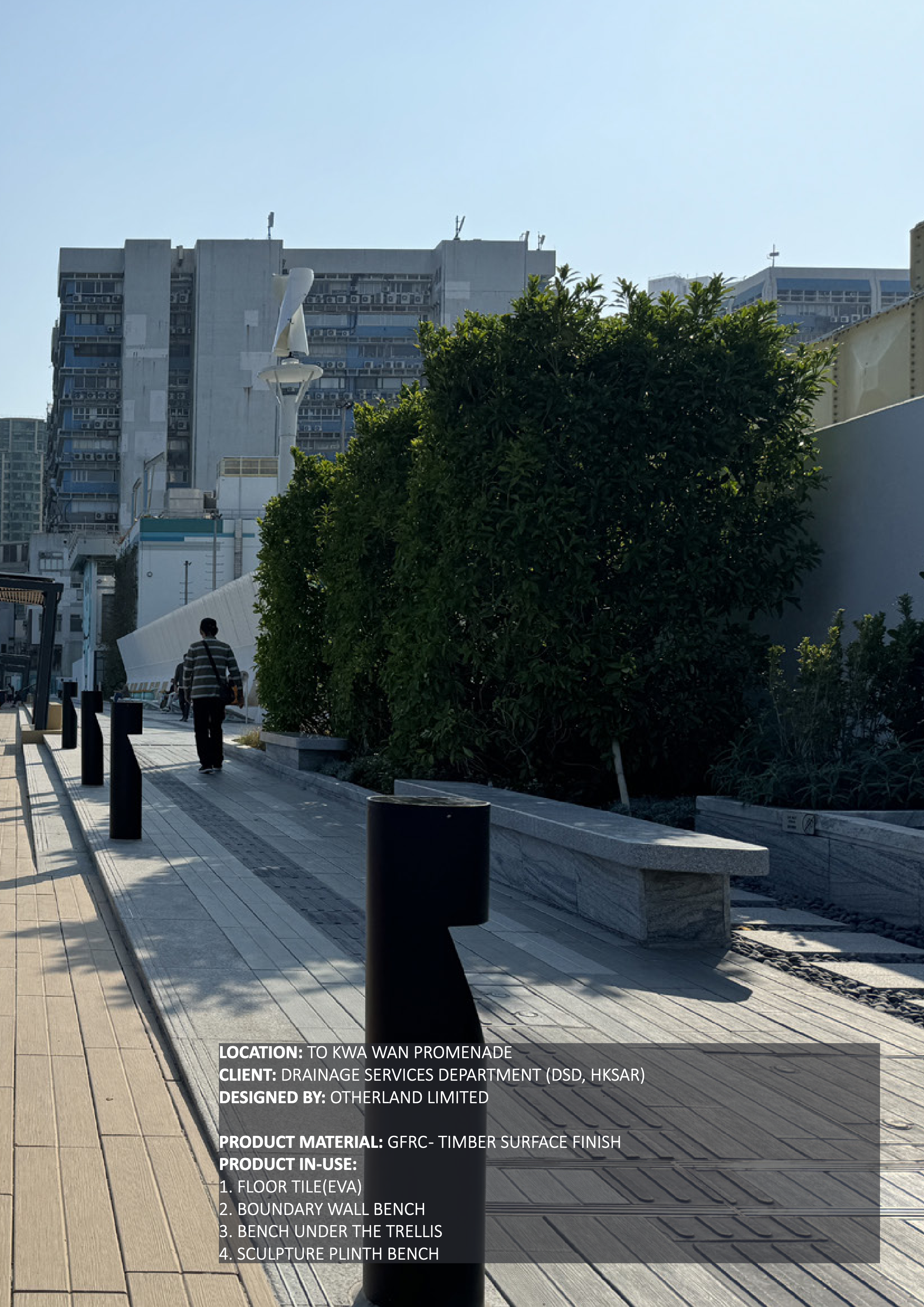 GFRC Floor Tiles (EVA), GFRC Timber Surface Finish Floor Tile, GFRC Boundary Wall Bench at To Kwa Wan Promenade