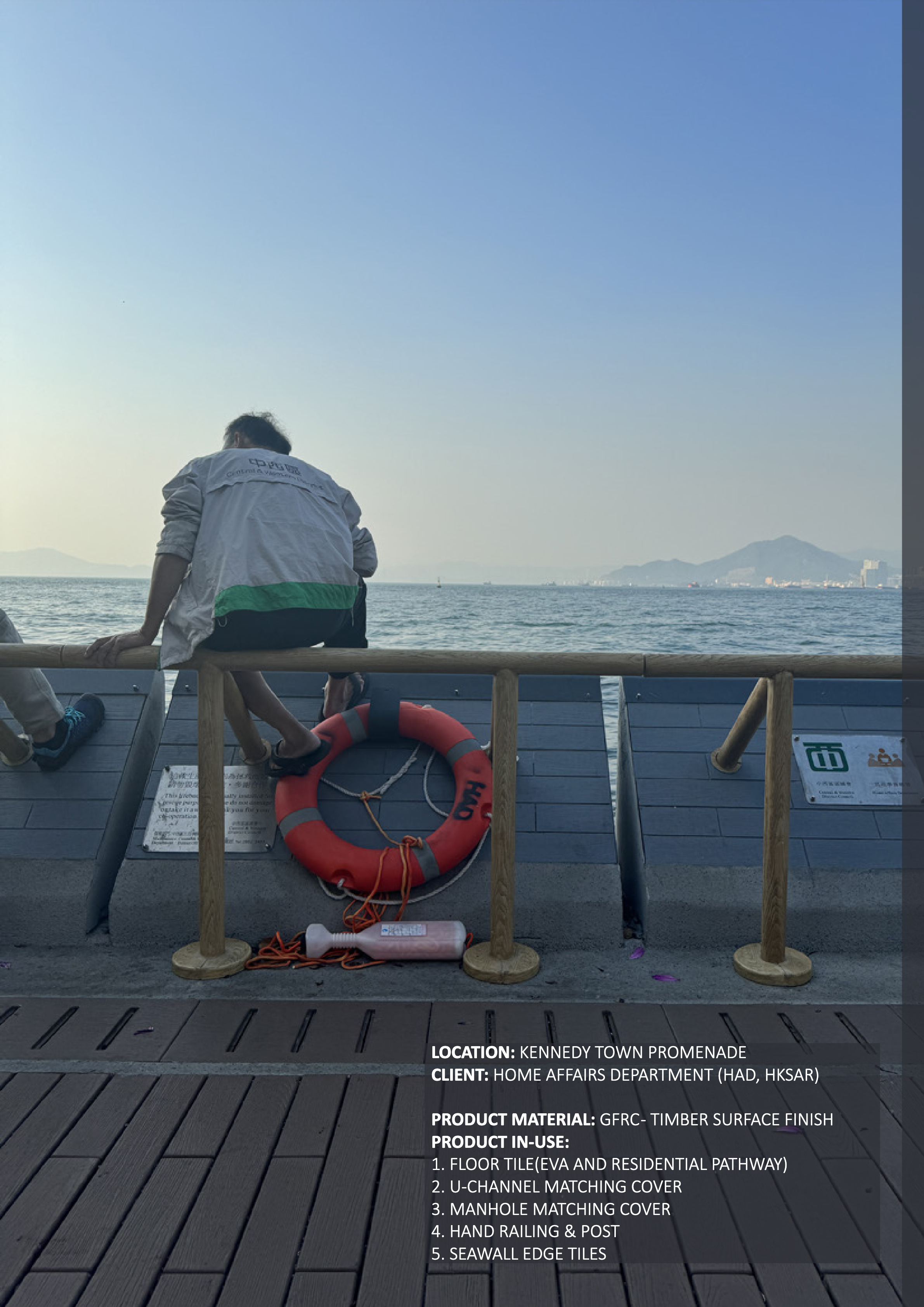 GFRC Tiles, Paving, Recessed Cover, GFRC Post & Rail at Kennedy Town Waterfront Sitting Out Area Central & Western District.