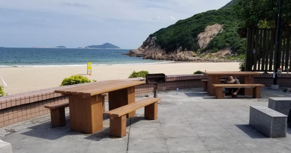 Picnic Tables with Benches at Shek O Beach Barbecue Area