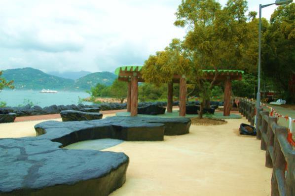 Landscape Works for Seating Area at Cheung Chau Island Pavilion, Stone Feature Bench, Rock Feature Border and Railing