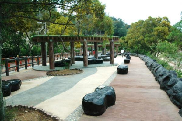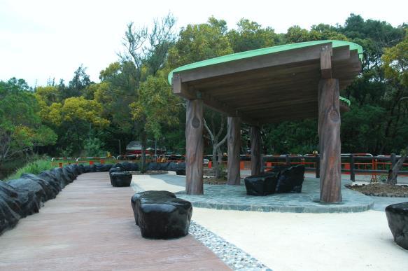 涼亭,石型長櫈,石型圍邊及扶手
